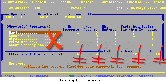 Le second écran donne la synthèse des résultats non plus pour la succession dans son ensemble mais pour chaque successible. Les résultats sont fournis pour chaque groupe d'héritiers appelés.